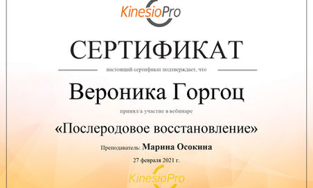 2021 Центр Кинезио Про курс «Послеродовое восстановление».